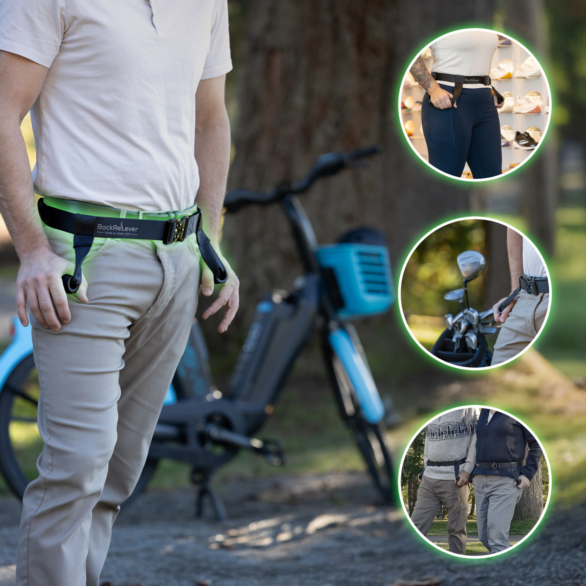 A wearable belt system designed to help users temporarily offload spinal load during everyday activities.